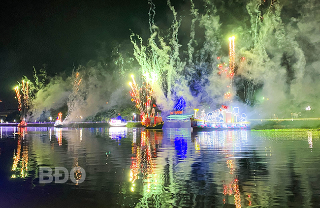 花船队烟花表演精彩纷呈。照片:NGUYEN DUNG