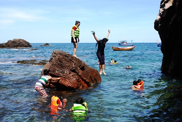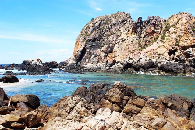 内陸部のビューから、Hon Seo島は巨大な船のよう岸に向かっている。今までは、Hon Seo島はまだ昔のままのオアシスであり、雑草、岩、多くの海洋生物種と多くの鳥が住んでいる。ここで人ないだが、ここに積み重ねられたカラフルな石の多数と岩の上に極めて広く、フラット授け創造主であり、時間が経つにつれて波がちょうど磨いたふっくら拳は非常にいいと空想に見える。美しいビーチと魅力的な石は地元の人々が出産石と呼ばれる。それは長年にわたって多くの思い切りという意味である。ここの石が地域の多くの人々と観光客はお土産や家の装飾として持ってくるが、この岩は、これまで蹴っていない。 ユニークな岩であり、おそらくBinh Dinh省でユニークである。岩から10m離れて自然の丘陵地帯の奥深くのが同時に数百人を収容することができるかなり大きな洞窟である。すべては観光客にとって非常に魅力的な水泳、リラックス、クールな場所である。