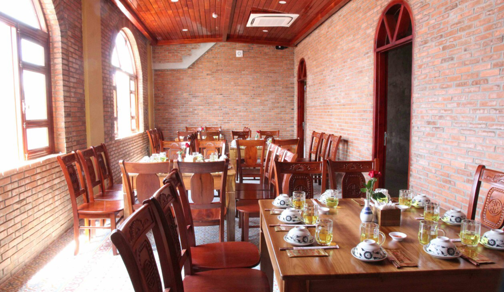 Moc Viet Restaurant은 도시 중심부에 위치해 있습니다. Quy Nhon. 고대 호 이안 스타일로 지어졌습니다. 레스토랑은 600 명 이상을 수용 할 수있는 다양한 공간에 배치되어 있습니다. 우리와 함께, 당신은 제공하는 방법에 각 요리의 따뜻함을 느낄 것입니다. 특히 여기는 쌀을 항아리에 지어 밥알 하나 하나의 향과 단맛을 느낄 수 있습니다.