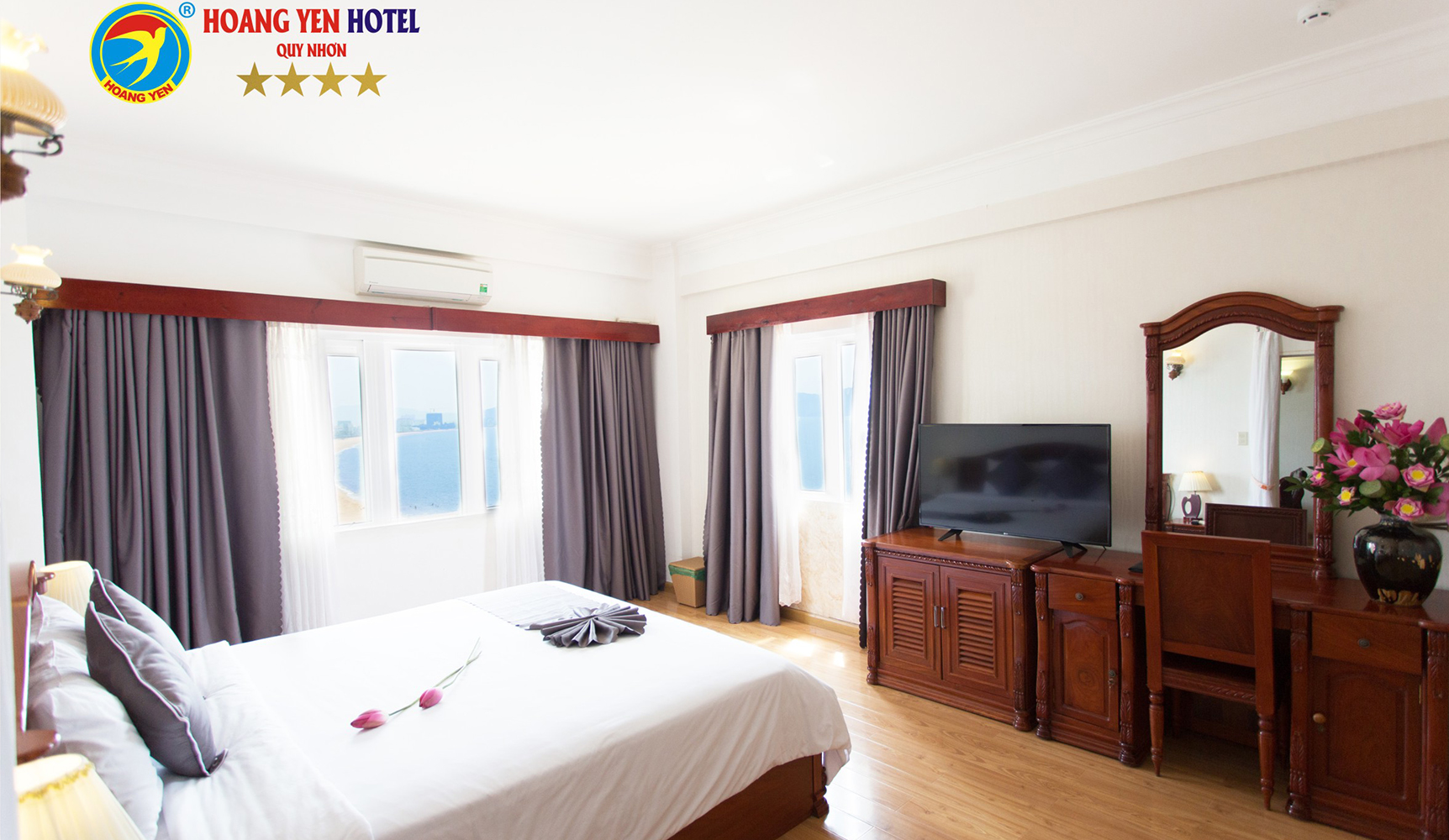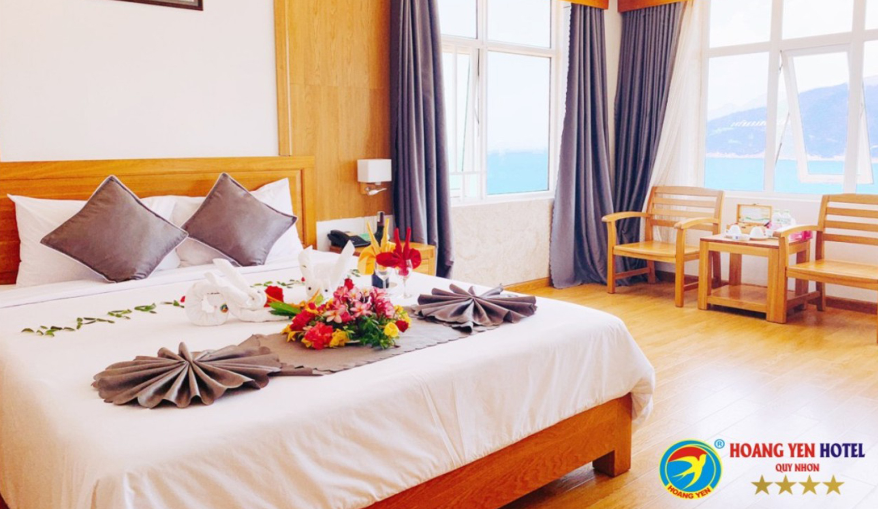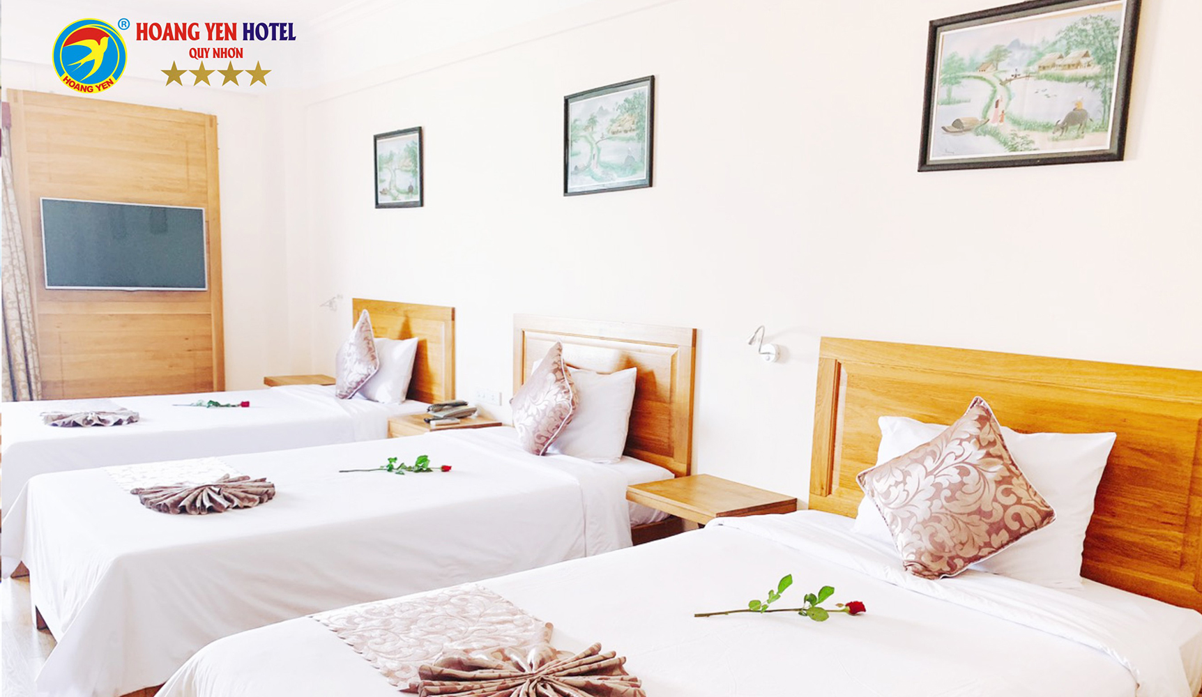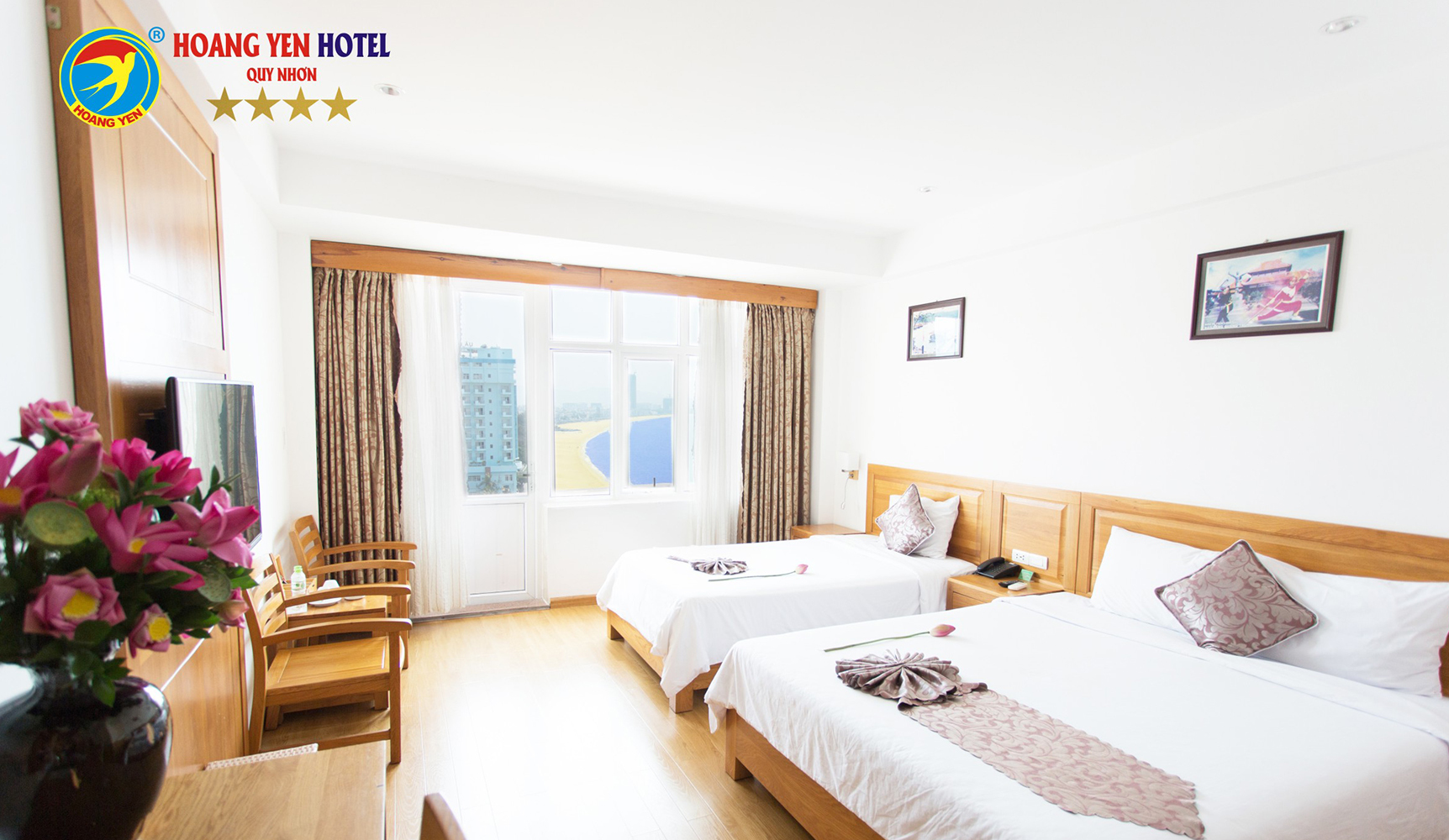 An Dương Vương. Hoàng Yến Hotel là một trong những khách sạn hàng đầu, tiện nghi, hiện đại vào bậc nhất ở Quy Nhơn. Tọa lạc bên bờ biển Quy Nhơn xinh xắn, sạch đẹp, khách sạn Hoàng Yến đạt tiêu chuẩn quốc tế 4 sao, với 105 phòng ngủ đầy đủ tiện nghi hiện đại, hệ thống nhà hàng sang trọng phục vụ trên 2.000 khách, hội trường phục vụ hội nghị cao cấp 400 ...