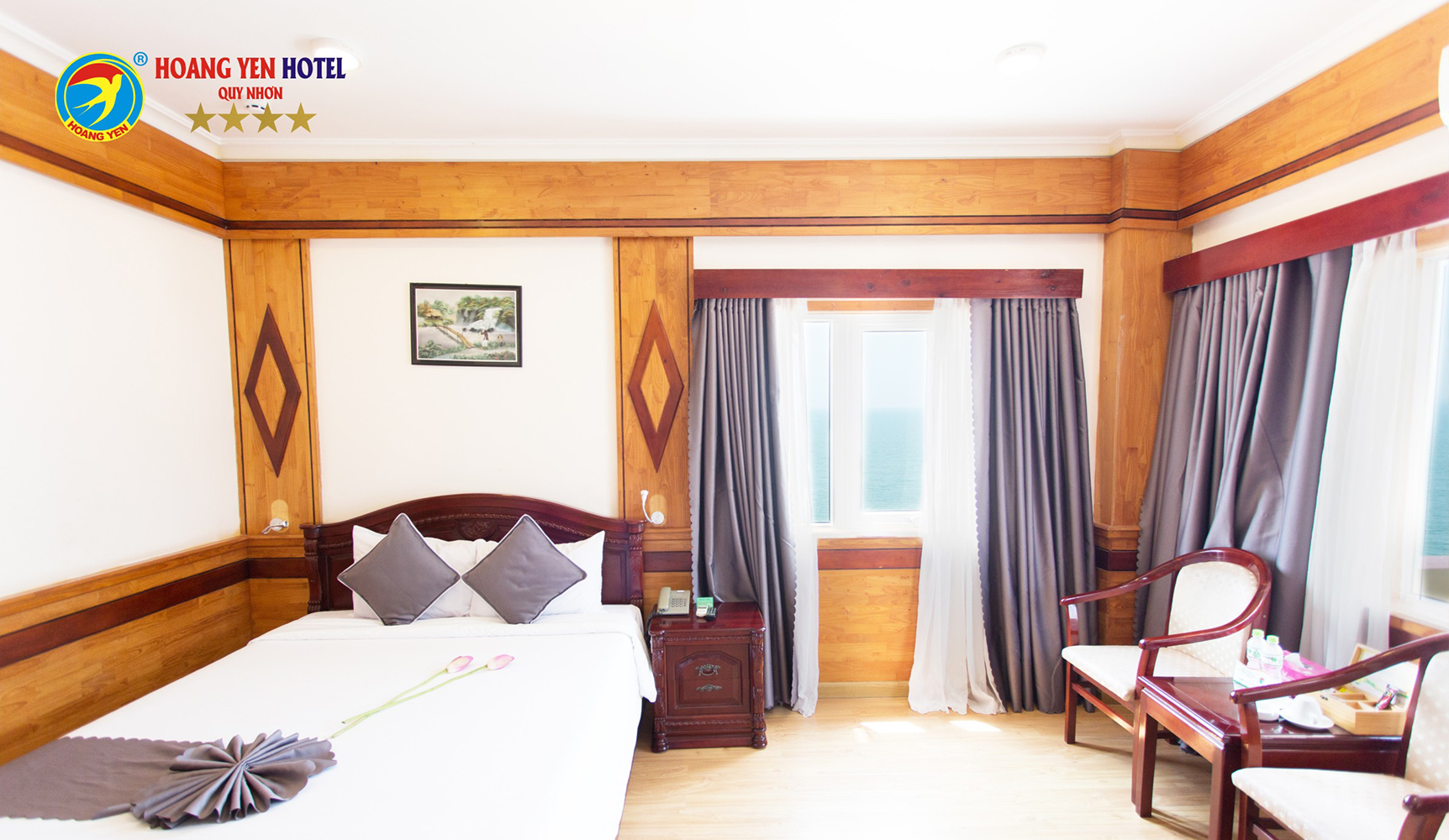 cho quý khách. Khách sạn Hoàng Yến Quy Nhơn còn có bãi đậu xe rộng rãi và an toàn với hướng vào ra thuận tiện cho việc di chuyển của các loại xe; đội ngũ bảo vệ trực 24/24 đảm bảo an toàn tuyệt đối về mọi phương diện. Đến với khách sạn Hoàng Yến, đón bình minh đang lên trên bờ biển thơ mộng với tách cà phê nóng, thưởng thức buổi buffet ...