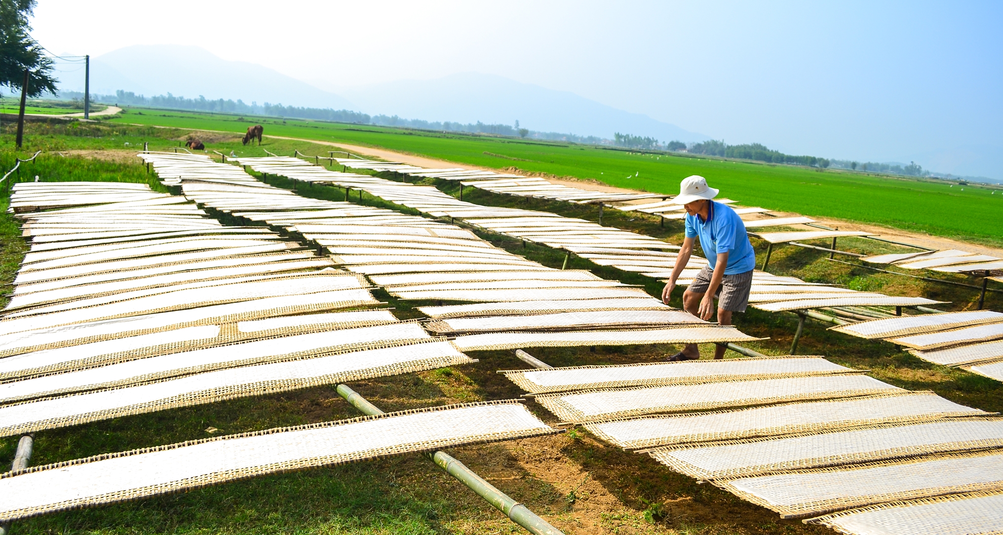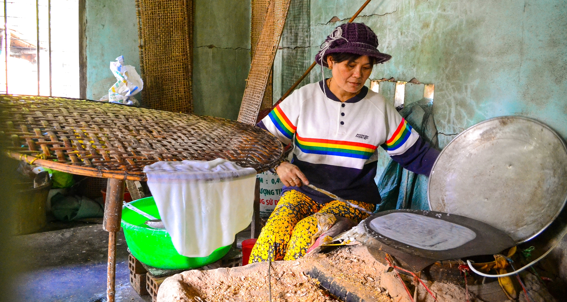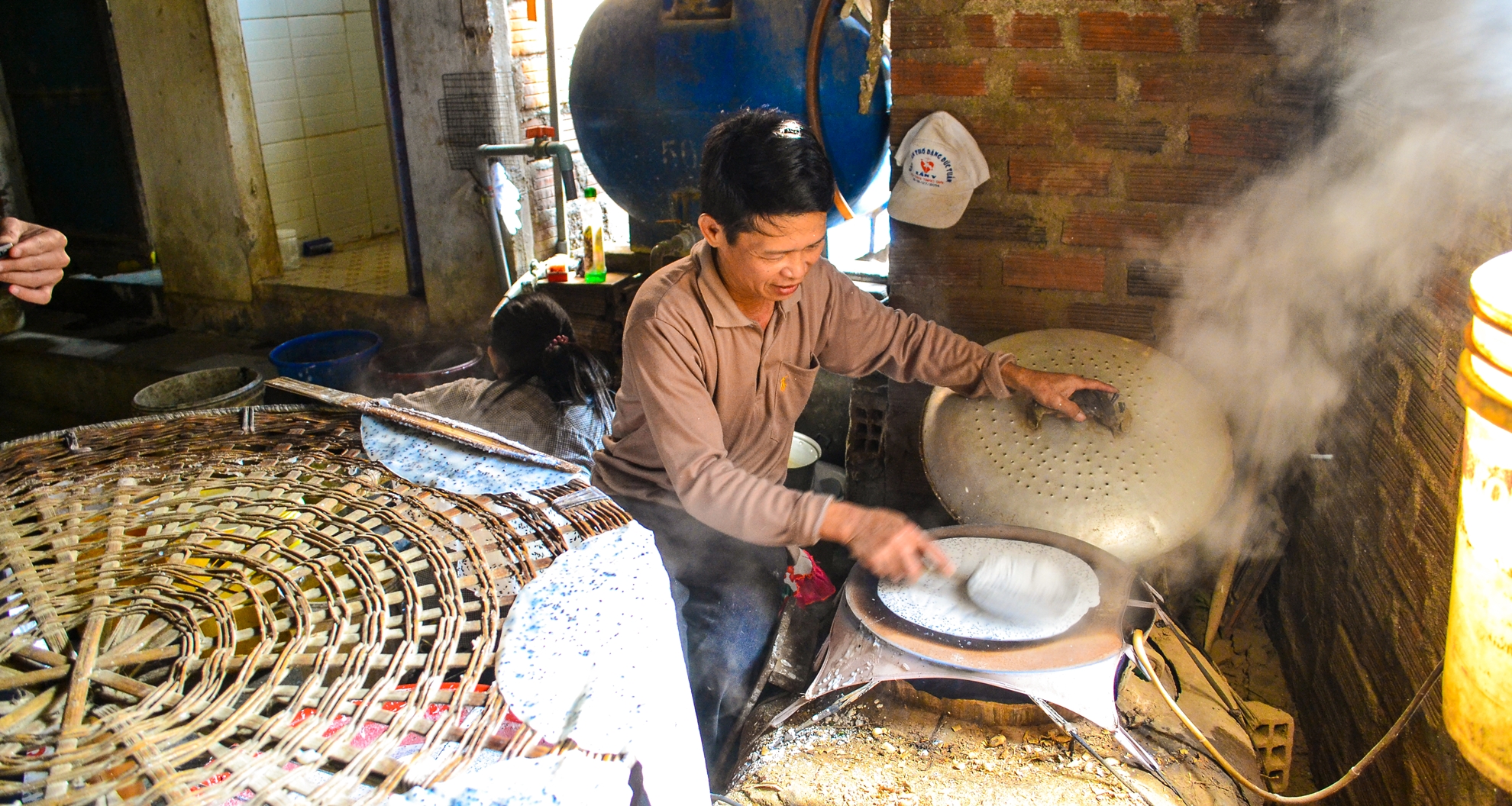 ên bánh. Khi đổ bột lên khuôn, phải lắc thật đều tay để bánh tròn, đẹp, không chỗ dày chỗ mỏng. Về Bình Định, có dịp ghé thăm Làng Bánh tráng Trường Cửu, du khách sẽ có những trải nghiệm lý thú về những công đoạn làm bánh tráng vô cùng tỉ mỉ.